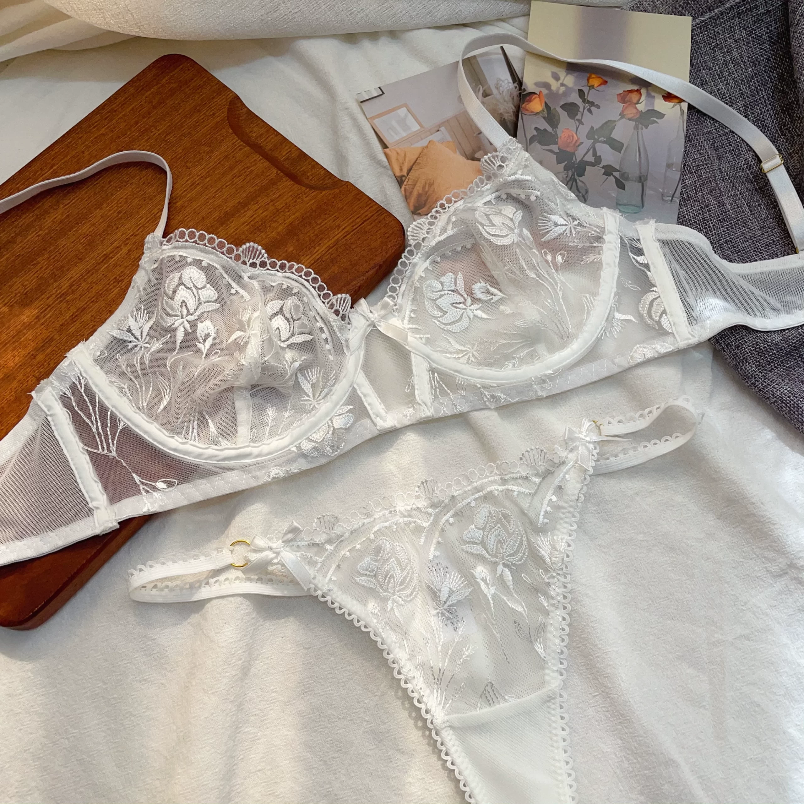 | nameOriginal | French lace embroidered bra set, slim and underwired, thin sexy underwear for women, pure desire transparent new product |