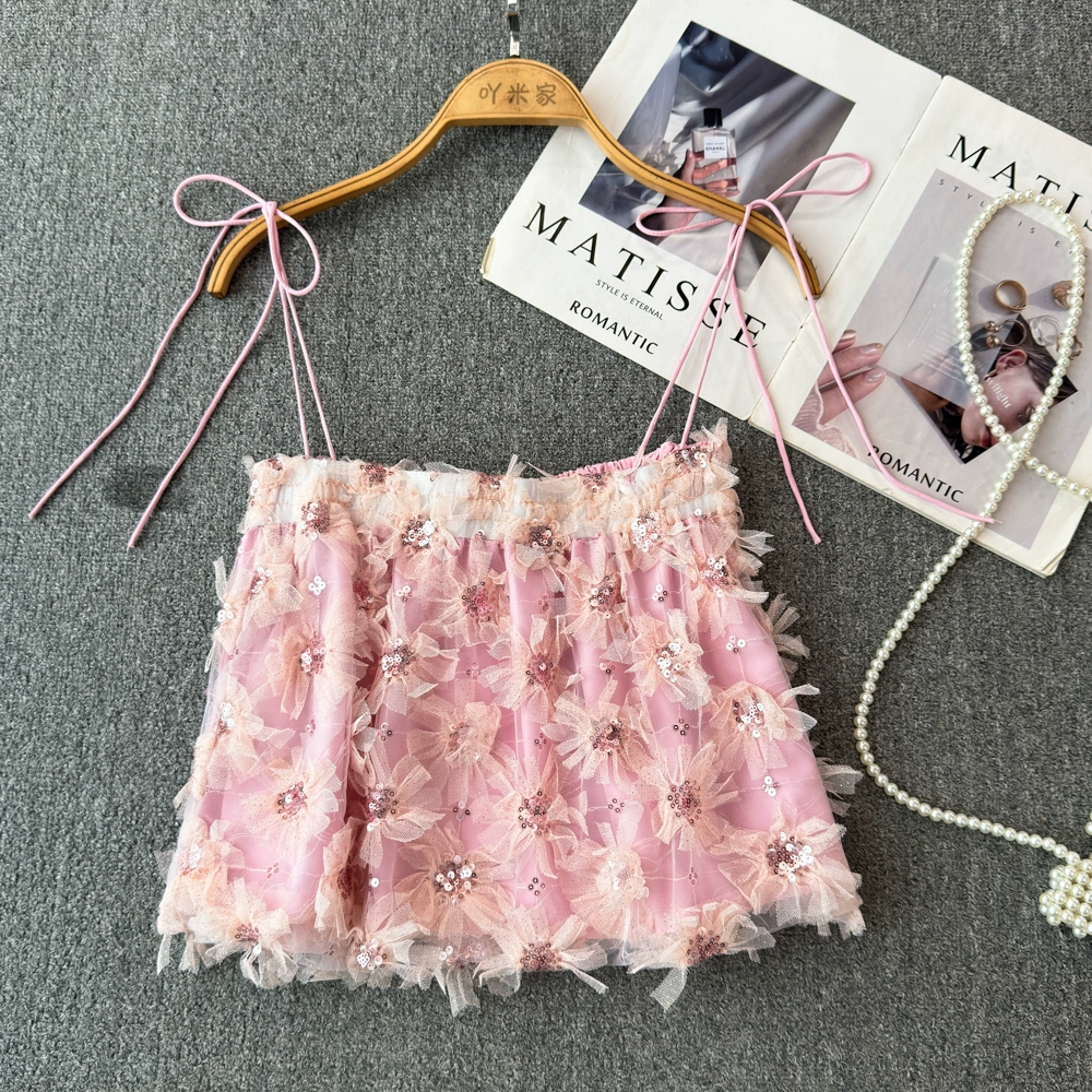 | nameOriginal | French lace sequin flower camisole women's inner layering and outer wear sexy short sweet and spicy pure lust top |