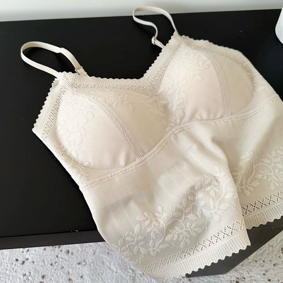 French lace sexy mesh breathable camisole beauty vest underwear for women with breast pads thin inner top base