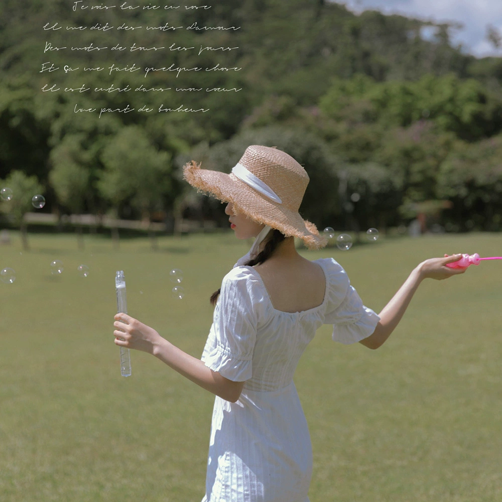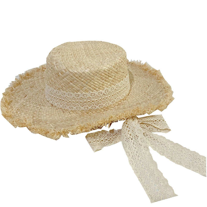 | nameOriginal | French lace-up straw hat for women summer fur-edge raffia hat with bow beach Hepburn style lace sun hat with large brim |