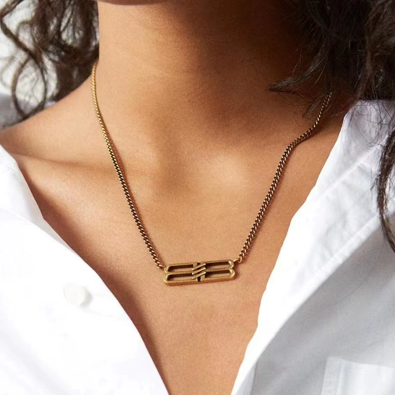 French light luxury retro B letters pendant necklace necklace niche high -level sensory temperament versatile collarbone chain high street men and women models