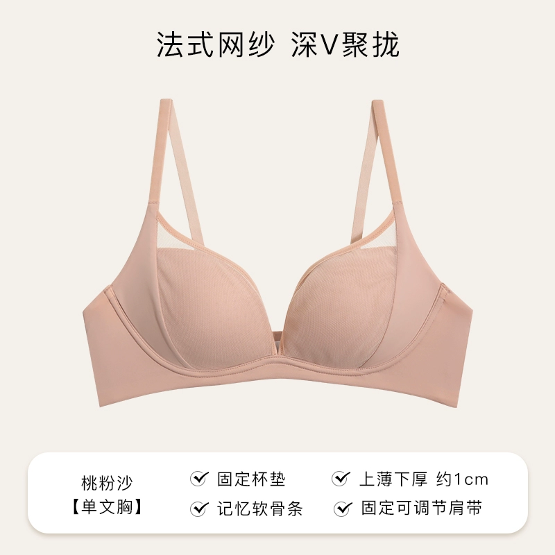 | nameOriginal | French mesh splicing summer underwear for women with big breasts and small breasts, gathered deep V, no steel ring, semi-fitting seamless bra |