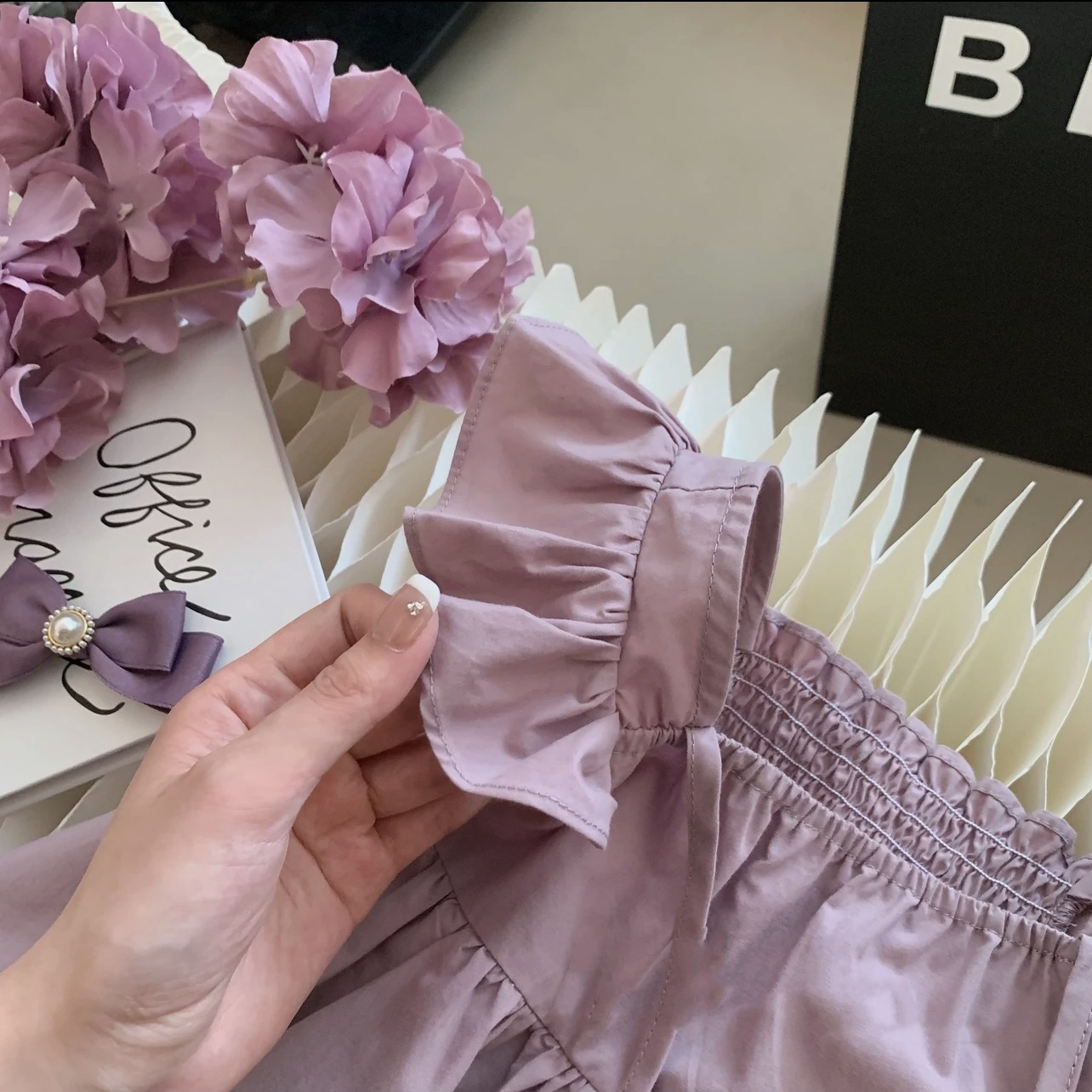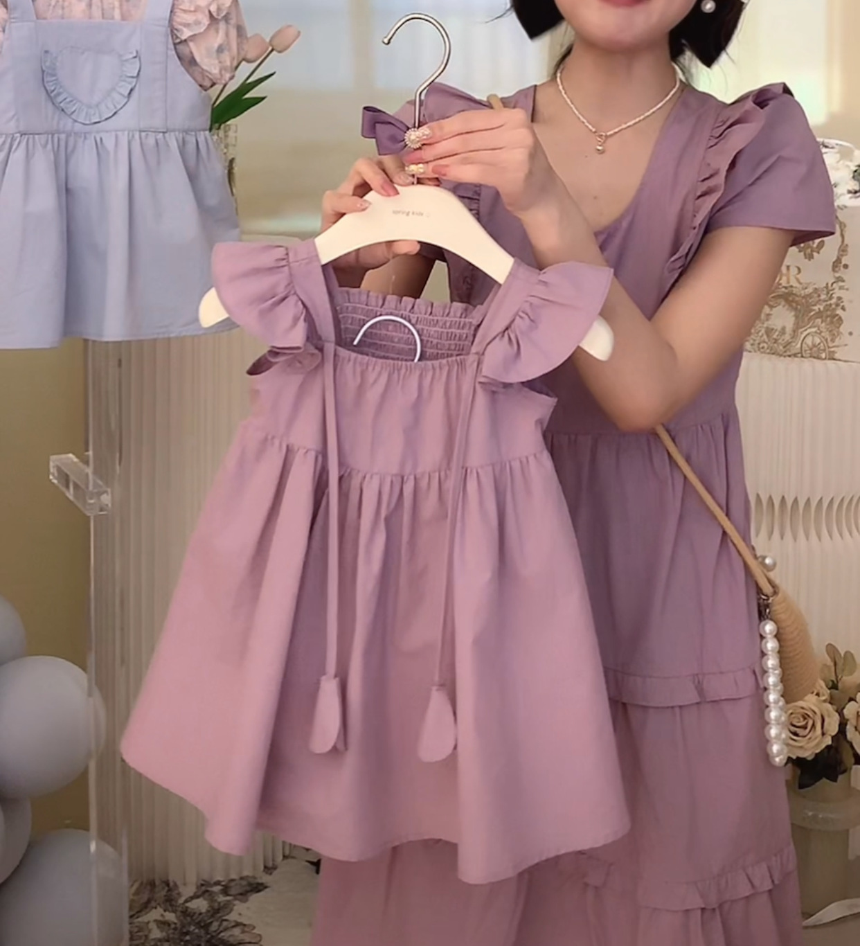 French Mother and Women’s Dress High-grade Purple Dress 2023 Summer Mid-length Small Flying Sleeve Stylish Parent-child Beach Dress