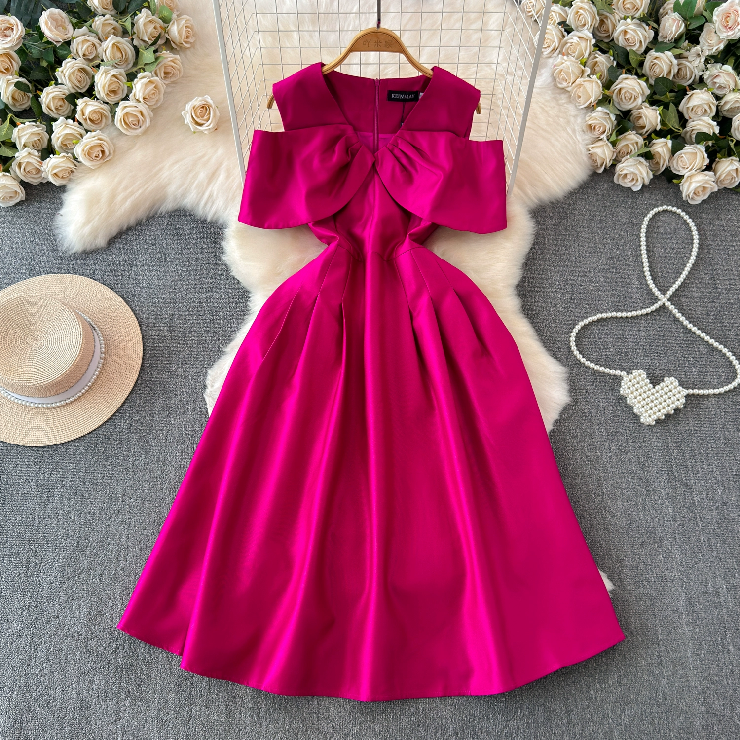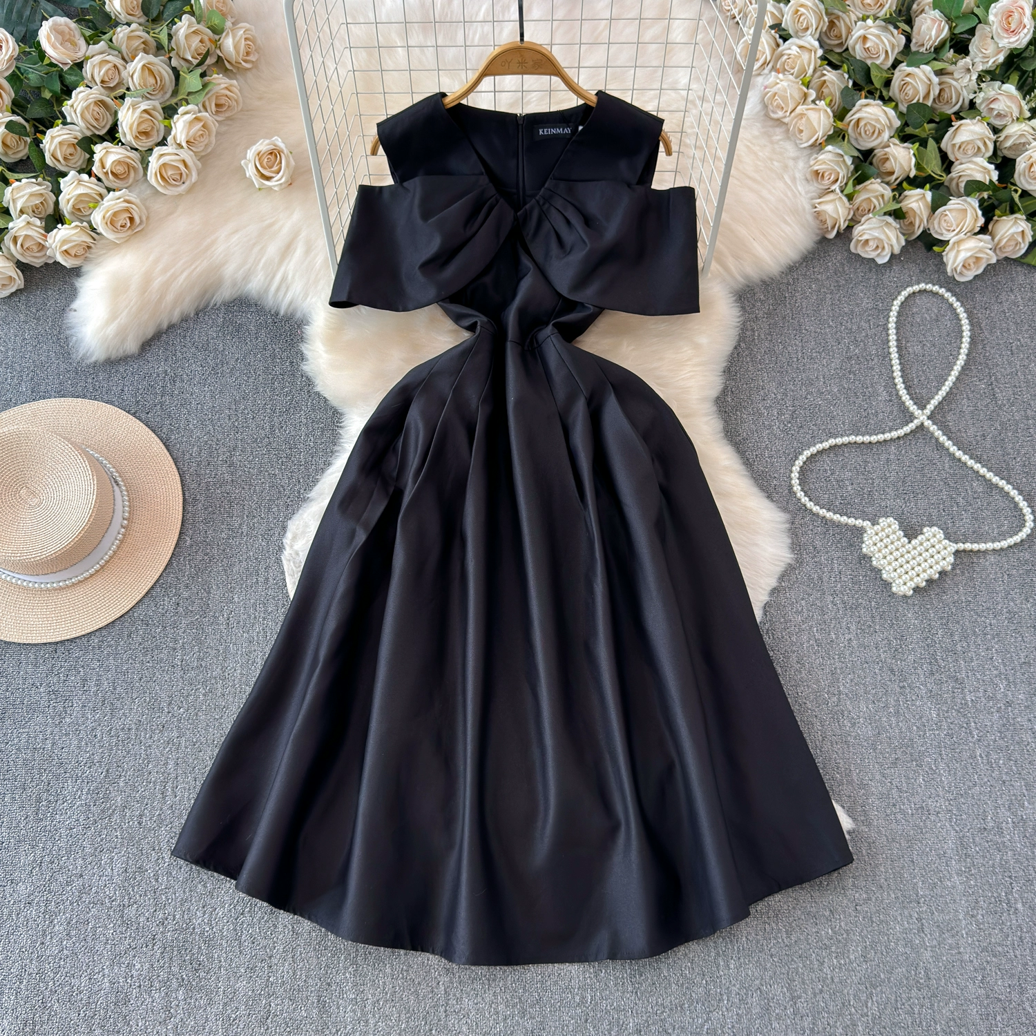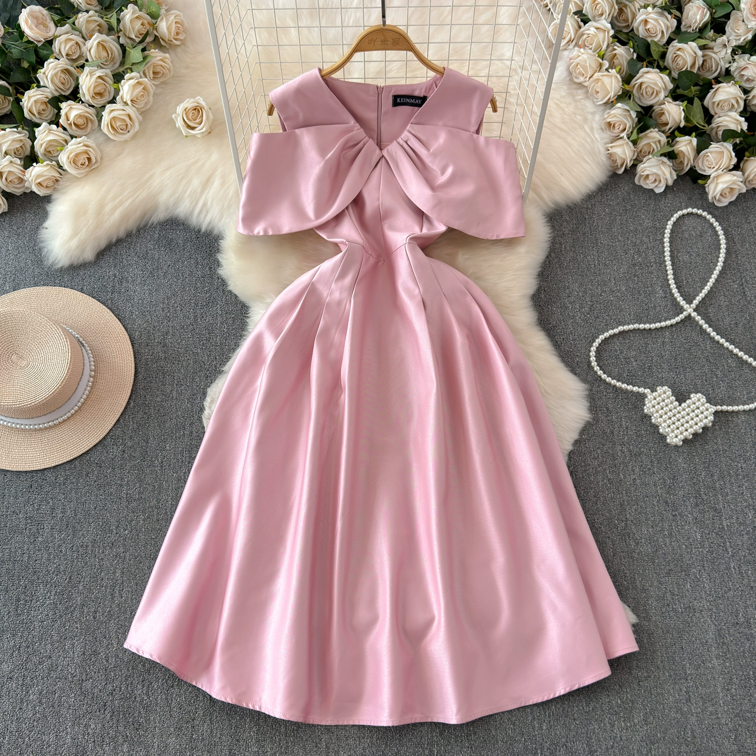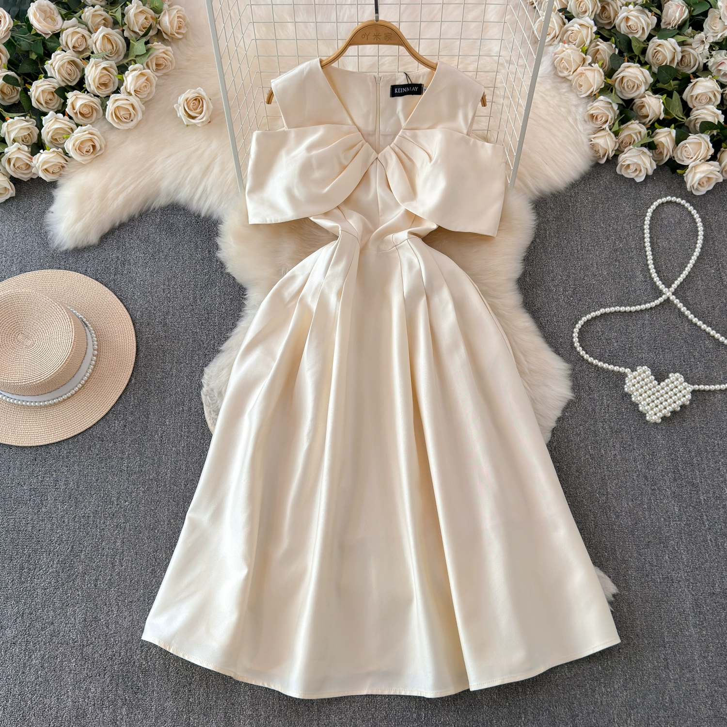 | nameOriginal | French niche birthday dress certificate white off-shoulder dress bow one-shoulder banquet photo long dress |