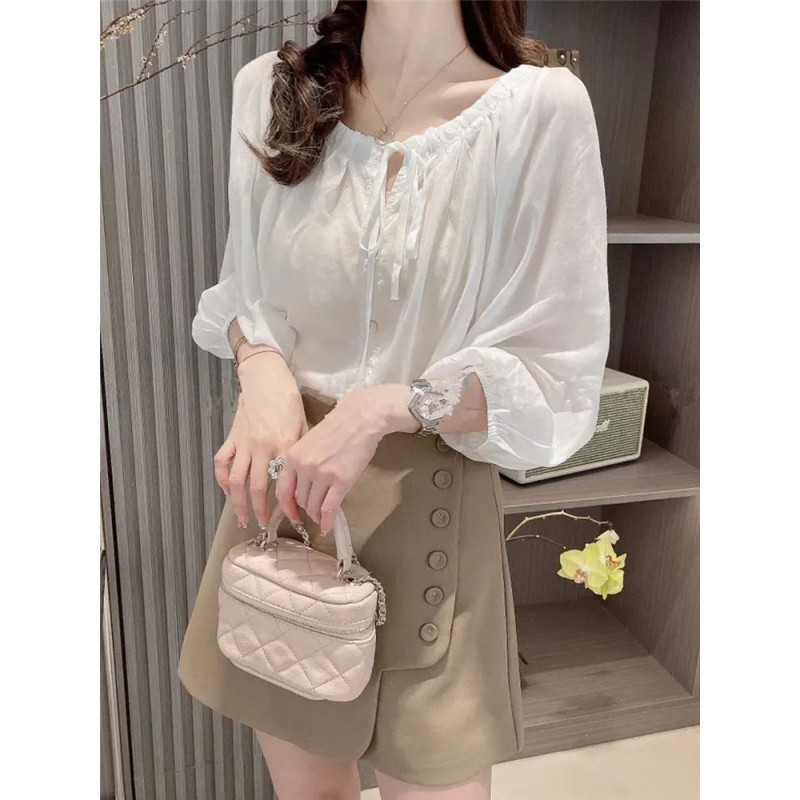 | nameOriginal | French Niche Seven-Sleeve Chiffon Shirt Women's Summer New Design Sense Western Style Fashion Puff Sleeve Chic Top |