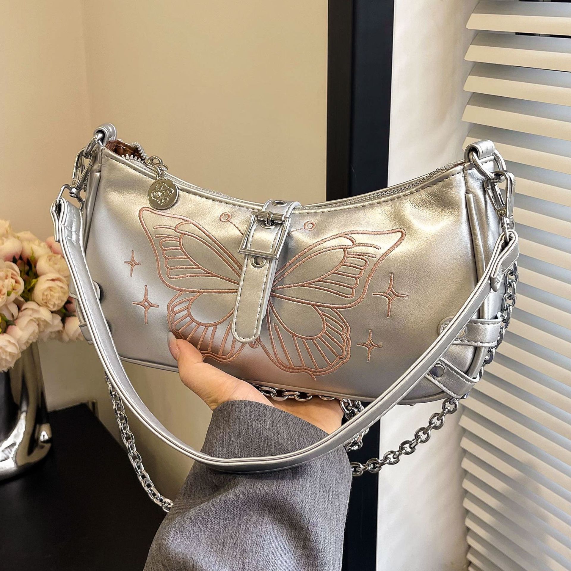 French Niche Underarm Bag Women’s 2024 Summer New High-end Texture Small Square Bag Chain Shoulder Crossbody Bag