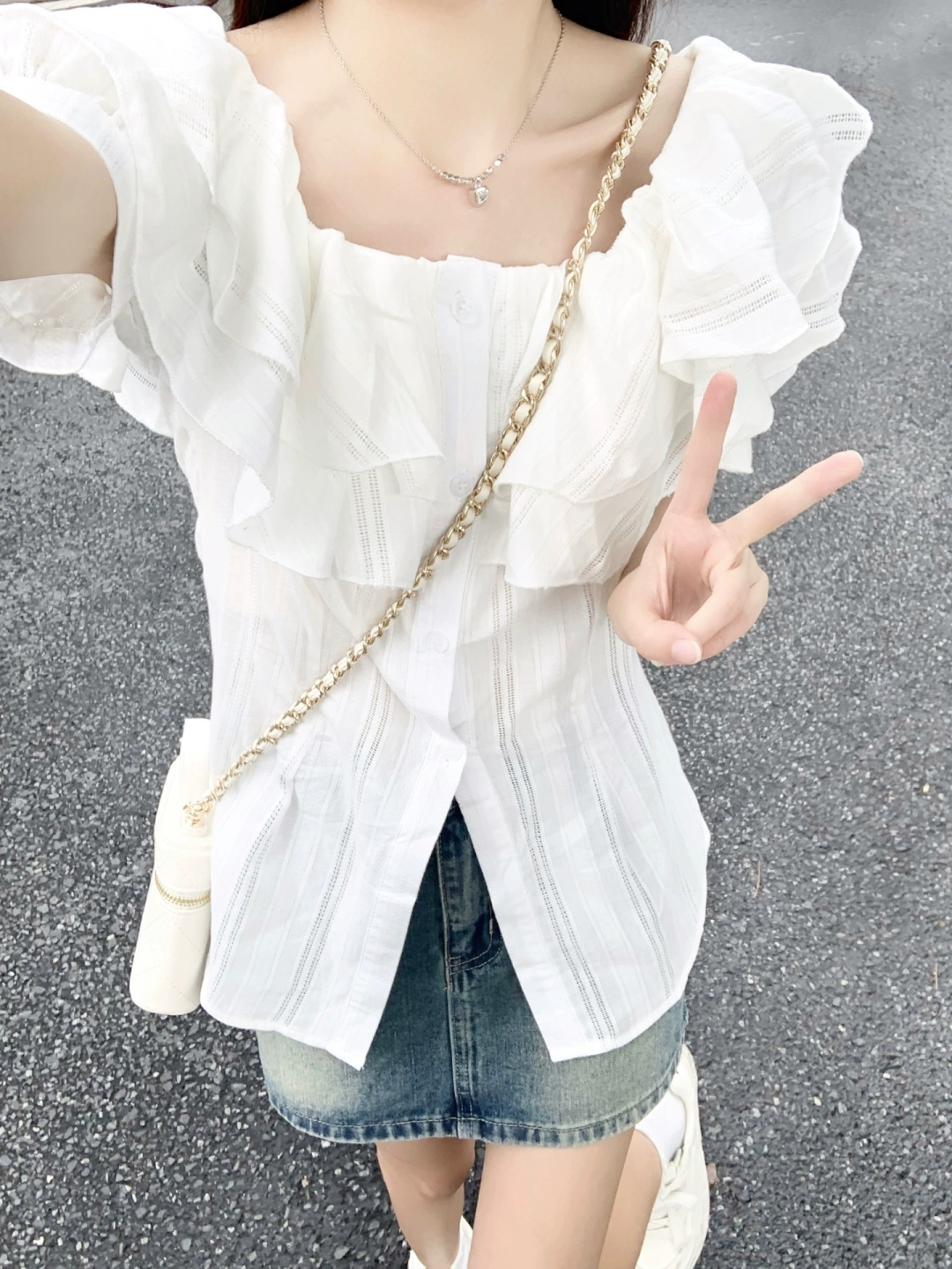French one-shoulder clavicle-slimming waist-hugging shirt