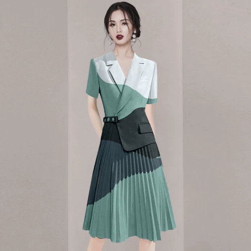 | nameOriginal | French original single spring and autumn short-sleeved suit collar pleated silk |