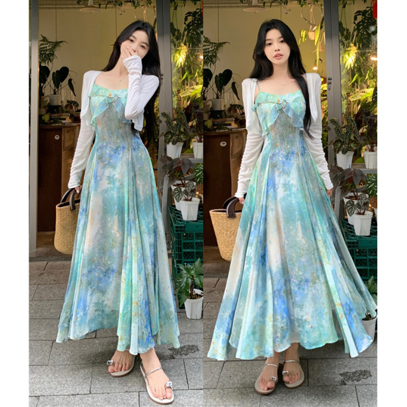 | nameOriginal | French pear-shaped figure cardigan chiffon dress for fat girls |