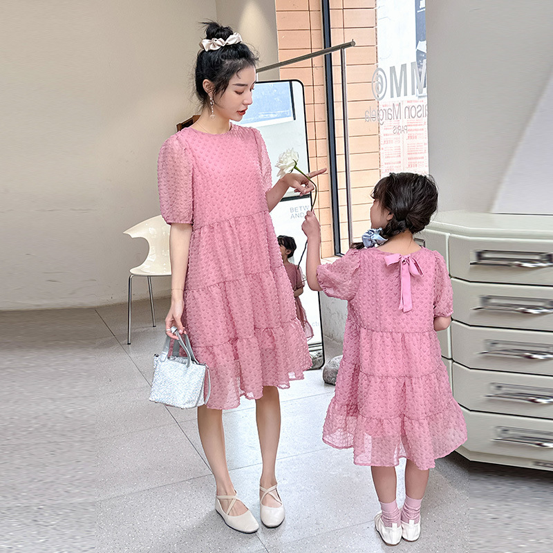 | nameOriginal | French Pink Dress Parent-Child Dress Women's Summer 2023 New Loose Sweet Puff Sleeve Mother-Dresses Fairy Dress |