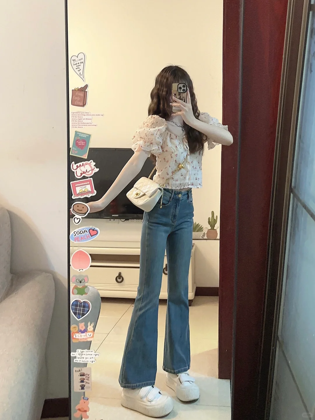 | nameOriginal | French pink floral crop top chiffon shirt |