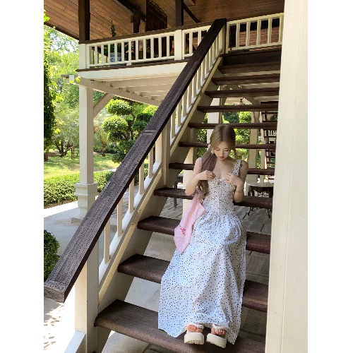 | nameOriginal | French polka dot backless summer vacation suspender dress |