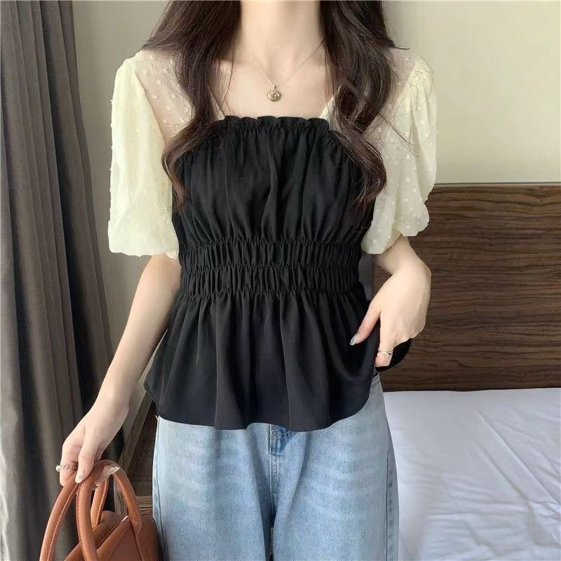 French Puff Sleeve Shirt Women’s Summer New Style Slimming Top for Chubby Girls Trendy Short Sleeve Chiffon Shirt