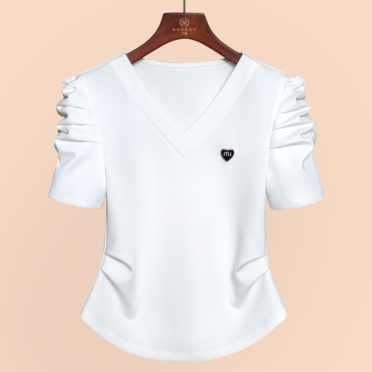 | nameOriginal | French Puff Sleeve White V-neck Short-sleeved T-shirt Women's Summer 2024 New Women's Pleated Flesh Covering Slim Top |
