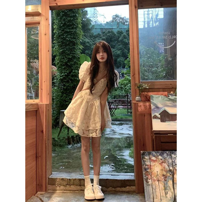 | nameOriginal | French Puff Sleeves at large Princess Style dress 2024 New Women's Tight Waist Slimming Shaggy Skirt Sweet and Spicy Summer |
