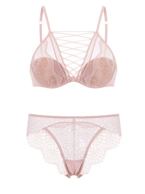 French push-up* underwear for women with small breasts, soft steel rings, sexy pure desire straps, hollow lace bra set
