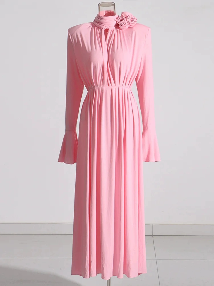 | nameOriginal | French retro bell-sleeved three-dimensional flower-decorated dress for women on seaside vacation photos with shoulder pads and side slits. |