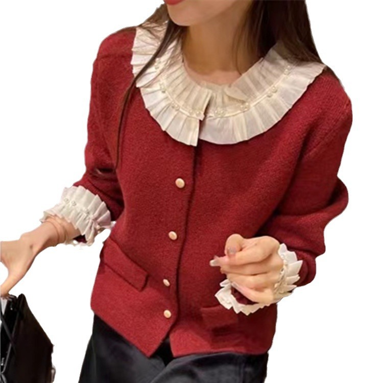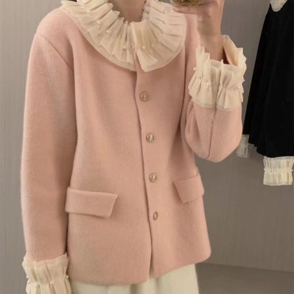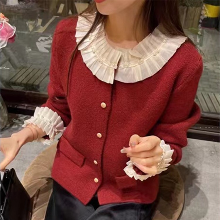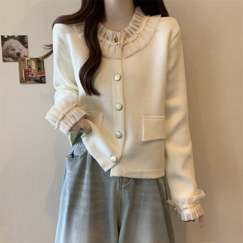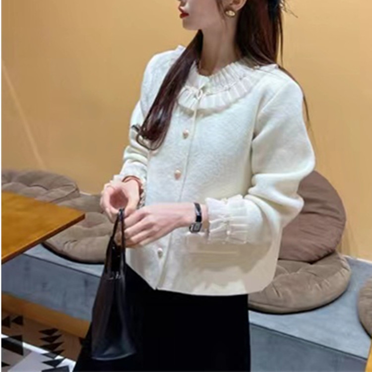 | nameOriginal | French retro Chanel style stitching fungus lace cardigan long sleeve single-breasted sweater coat all-match sweater |