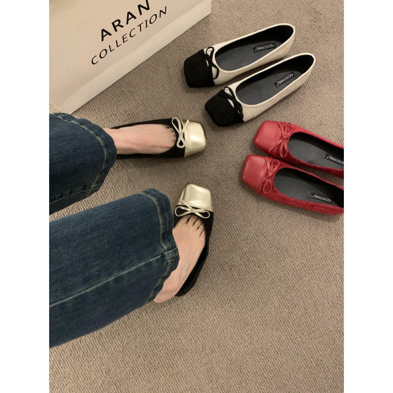 | nameOriginal | French retro color matching square bow flat sole shoes for women 2024 new spring pedal Doudou cross-border |