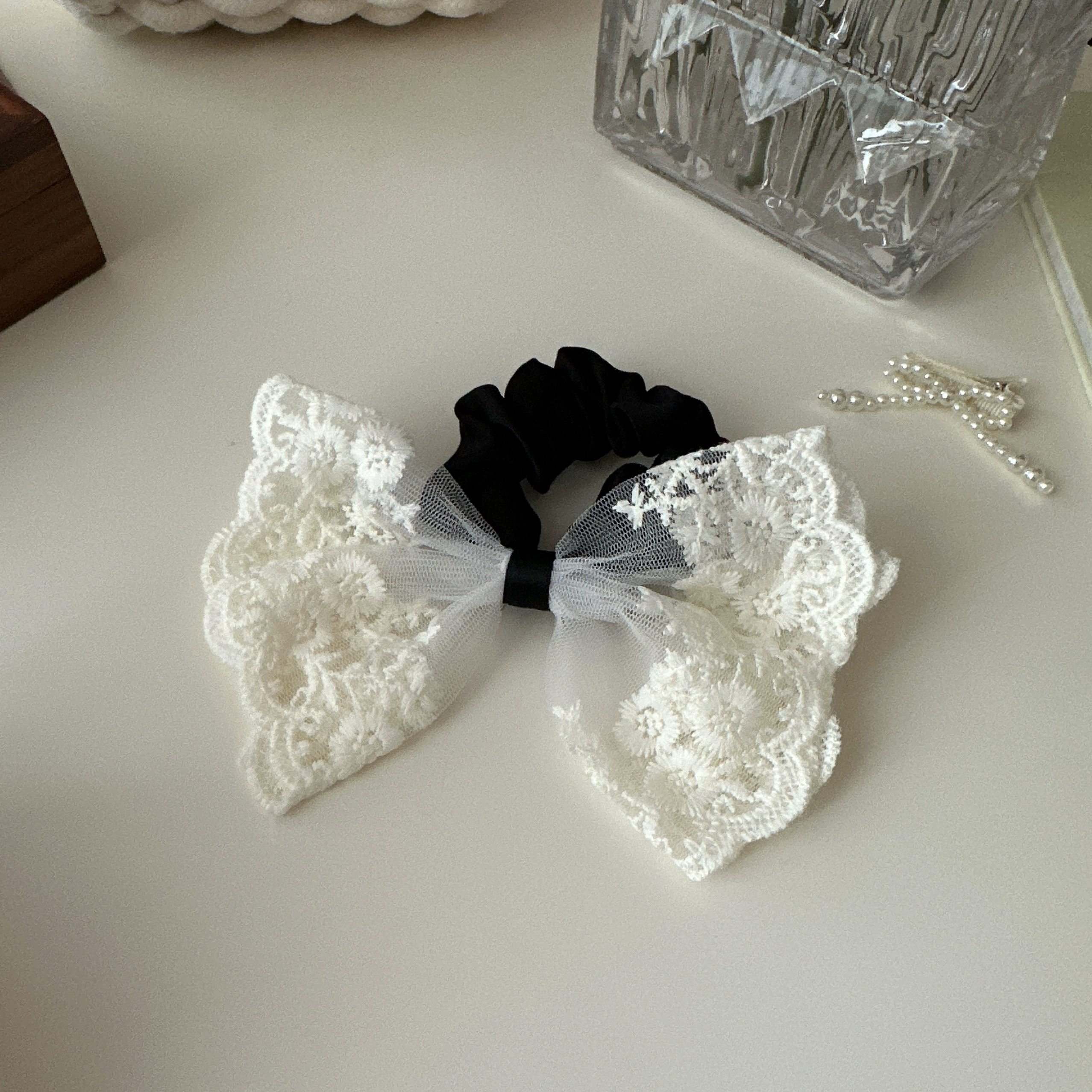 French retro fairy lace bow hair tie hairpin ins spring clip grabber forest low ponytail clip