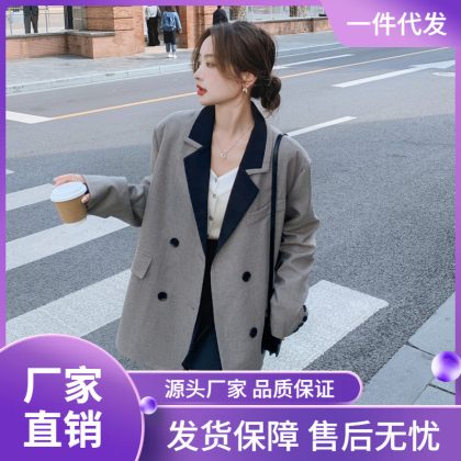 | nameOriginal | French Retro Grey Stitching Small Suit Jacket Women's 2024 Spring Korean Style Korean Retro Hong Kong Style Casual Suit |