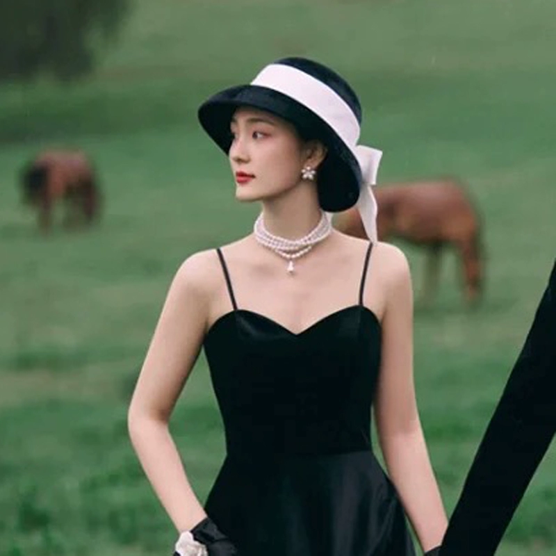 | nameOriginal | French retro Hepburn style camellia hat British velvet large mesh hat bridal travel photography head accessories |