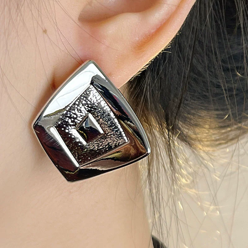 | nameOriginal | French retro irregular square shield unique earrings 2023 new popular autumn and winter high-end temperament earrings |