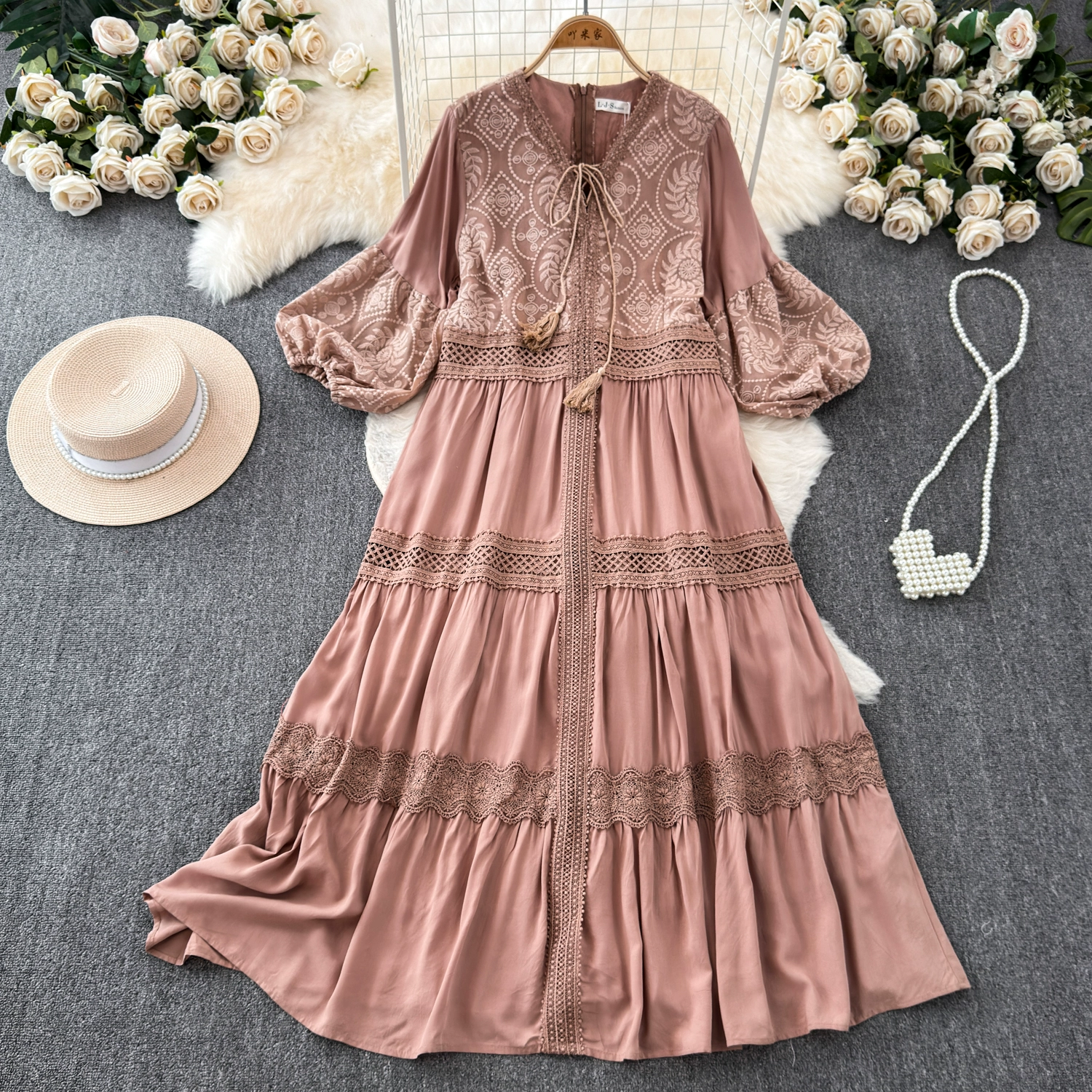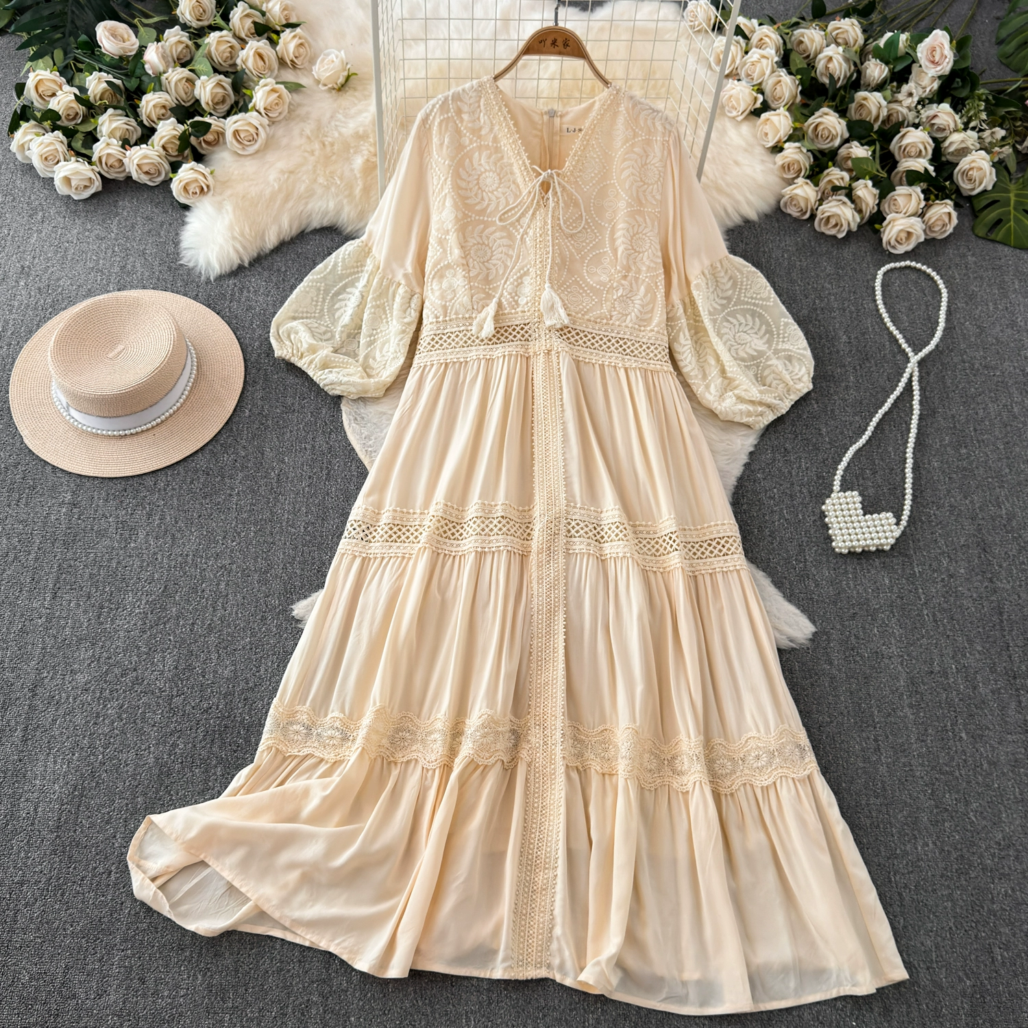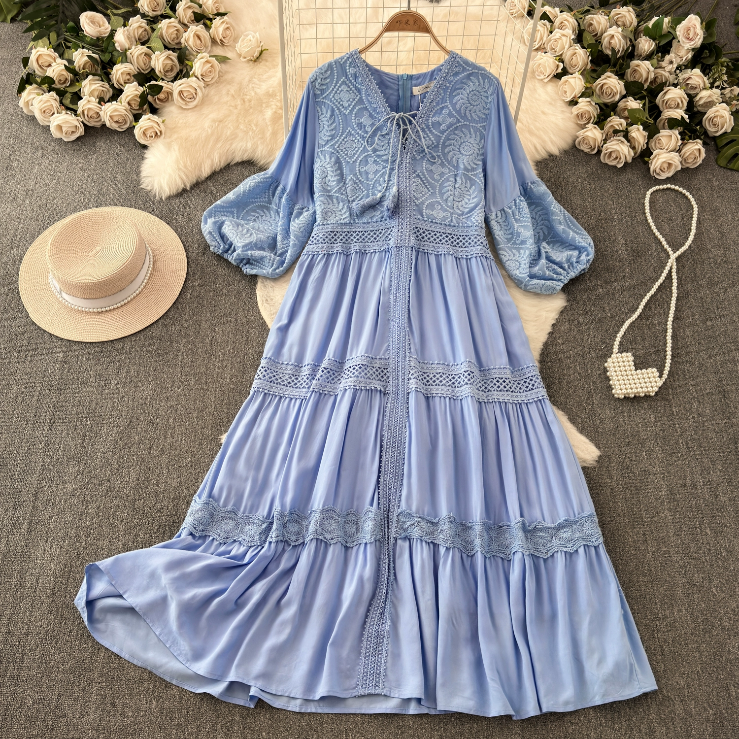 | nameOriginal | French retro palace style dress for women summer new style high-end temperament stitching lace embroidery long-sleeved skirt |
