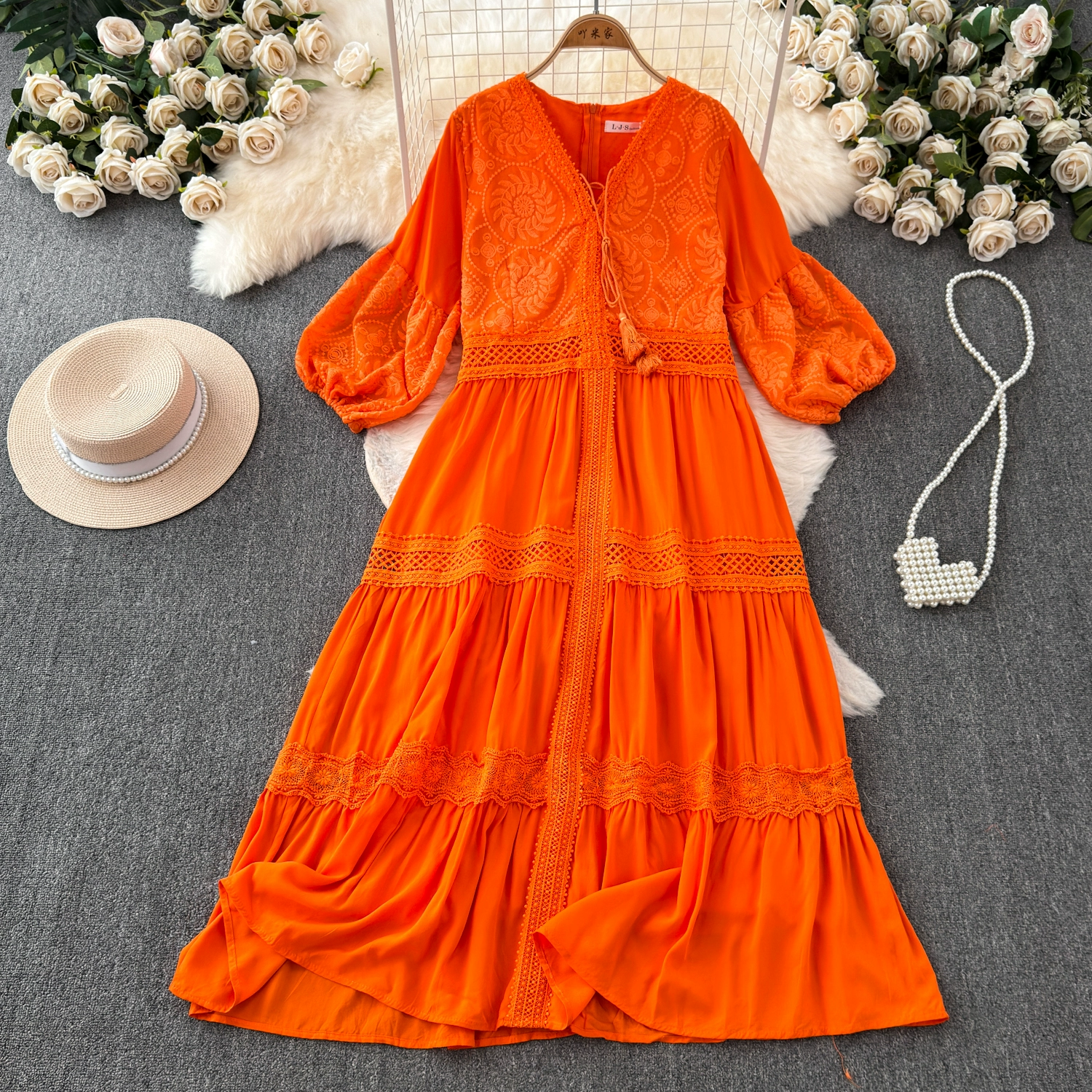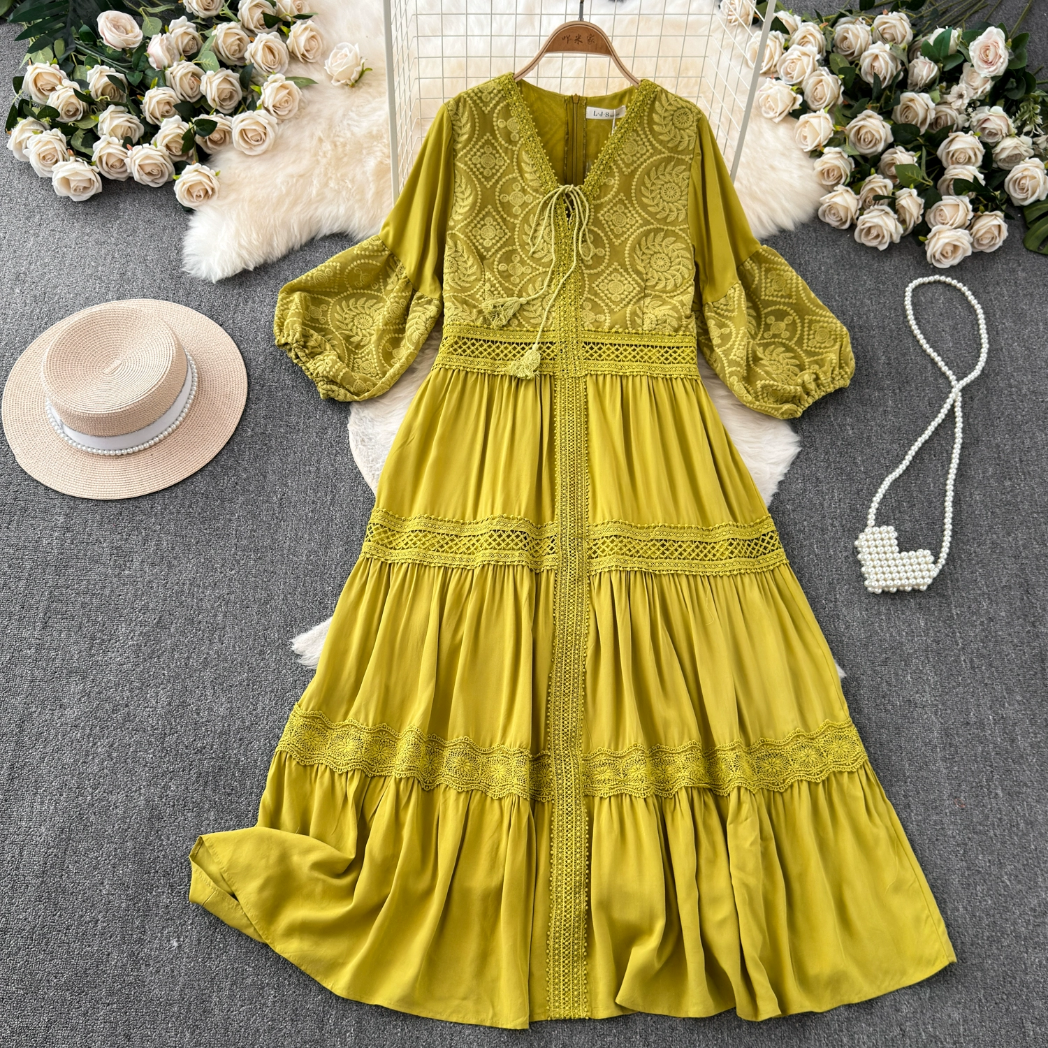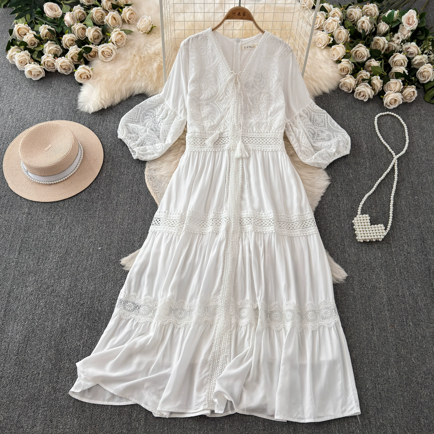 | nameOriginal | French retro palace style dress for women summer new style high-end temperament stitching lace embroidery long-sleeved skirt |