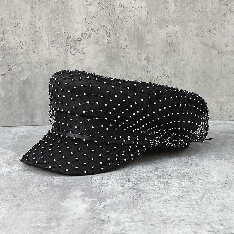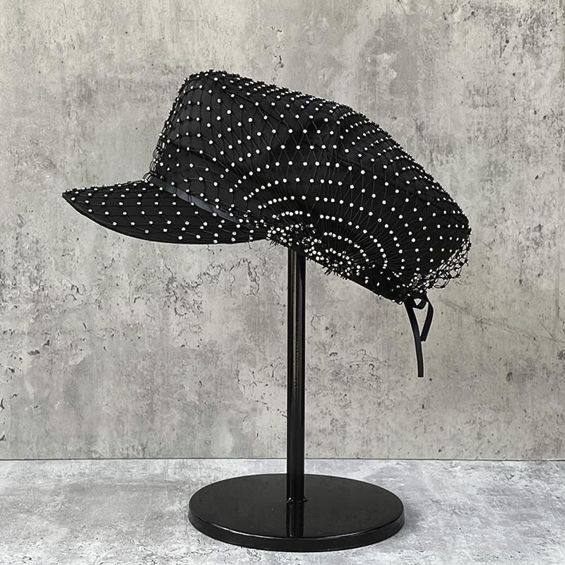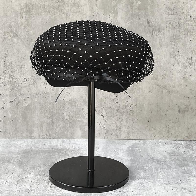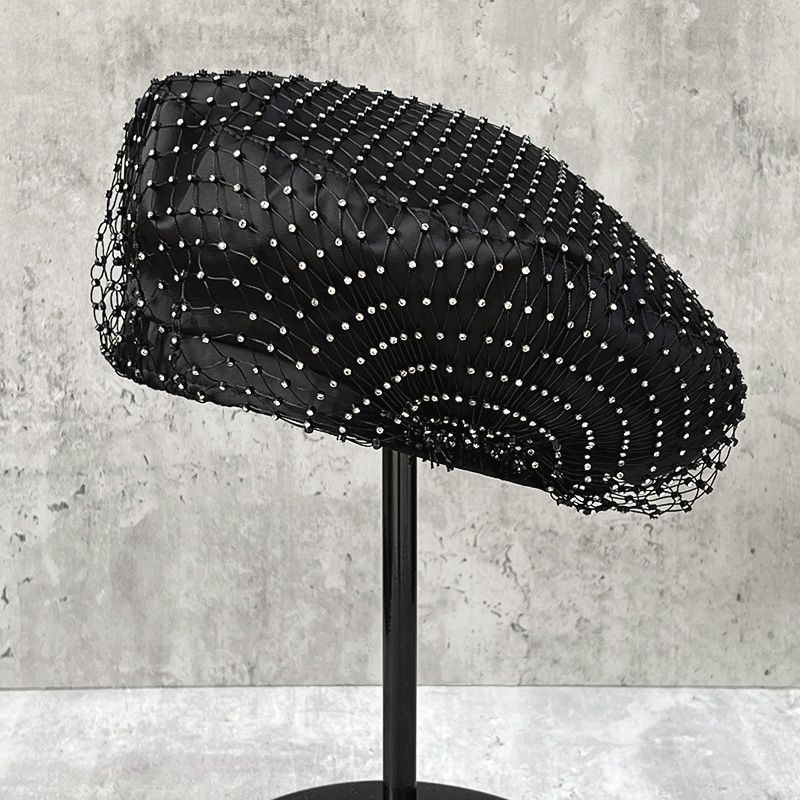 French Retro Socialite Style Rhinestone Mesh Beret Women's Autumn and Winter Elegant and Elegant Newspaper Boy Cap Flat Cap