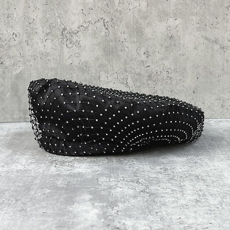 French Retro Socialite Style Rhinestone Mesh Beret Women’s Autumn and Winter Elegant and Elegant Newspaper Boy Cap Flat Cap