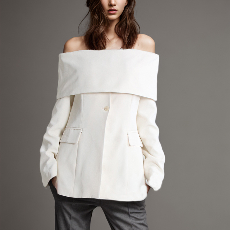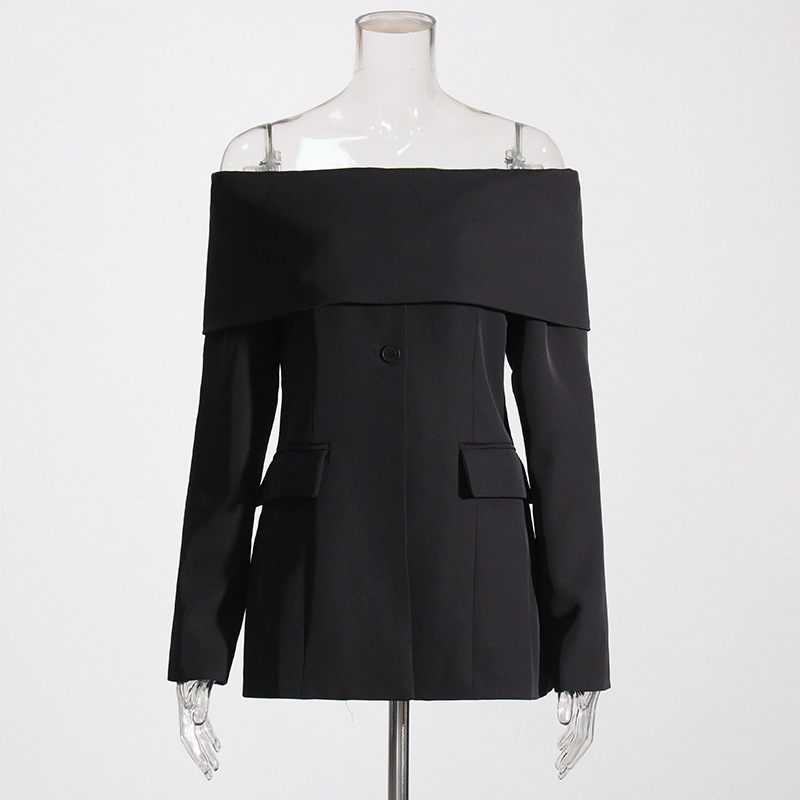 French retro style 2024 spring new off-neck long sleeve waist tight solid color mid-length buckle small suit jacket for women