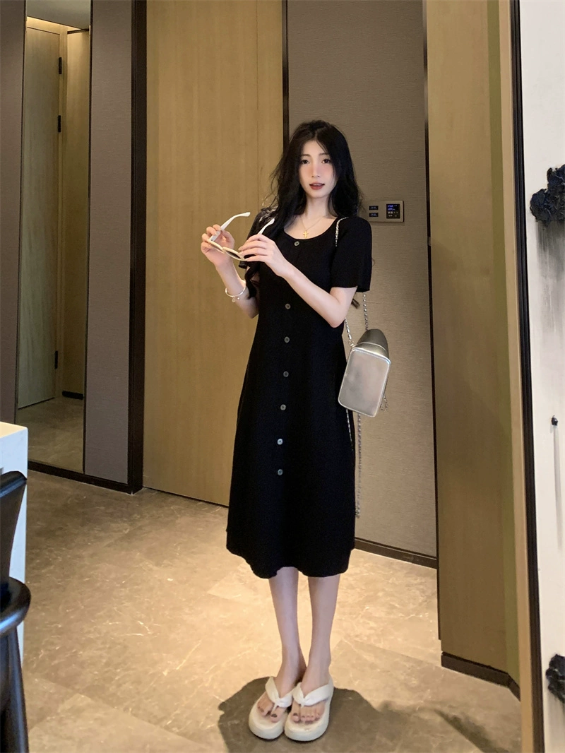 | nameOriginal | French retro summer black fat mm dress |