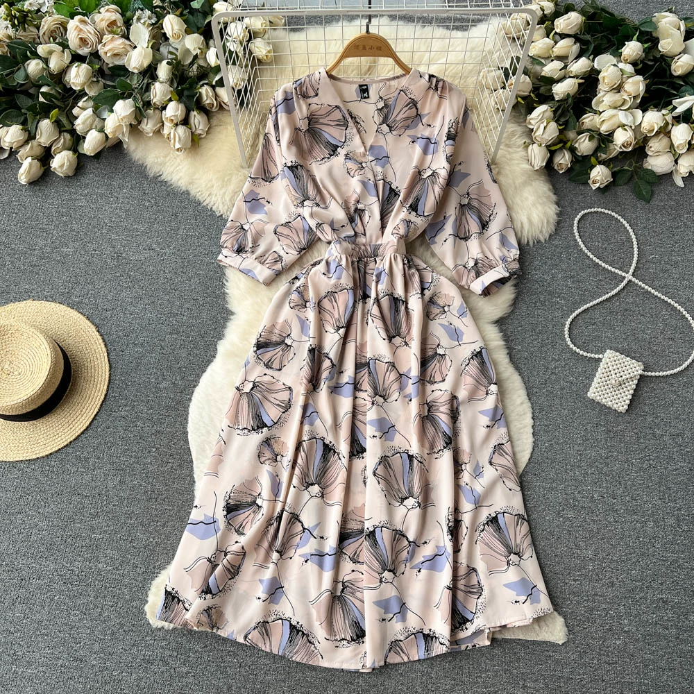 | nameOriginal | French Retro Summer New Quarter Sleeve Floral Skirt |