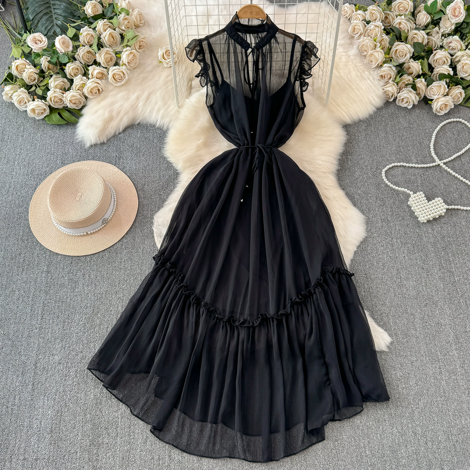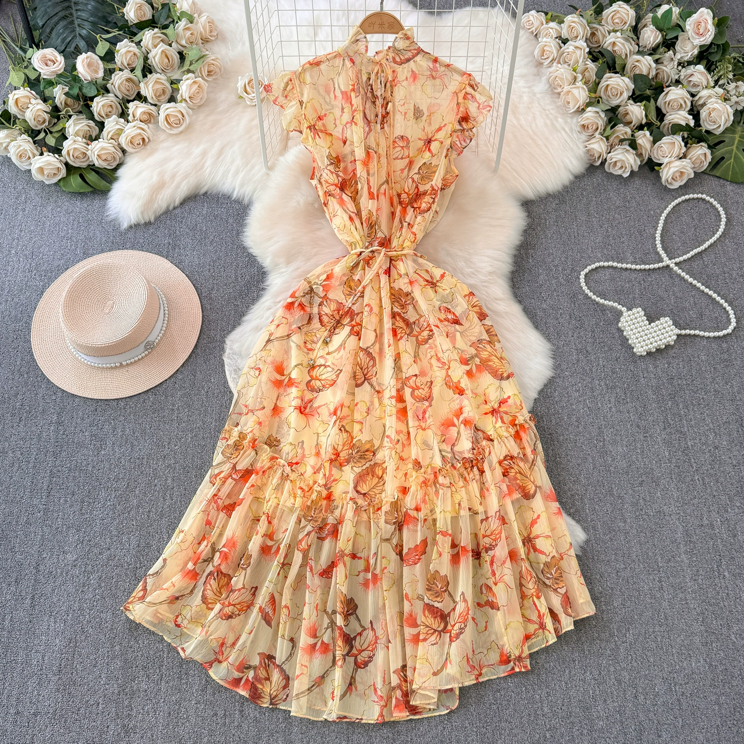 | nameOriginal | French retro temperament high-end floral dress women's new summer new waist slimming ruffled chiffon long skirt |