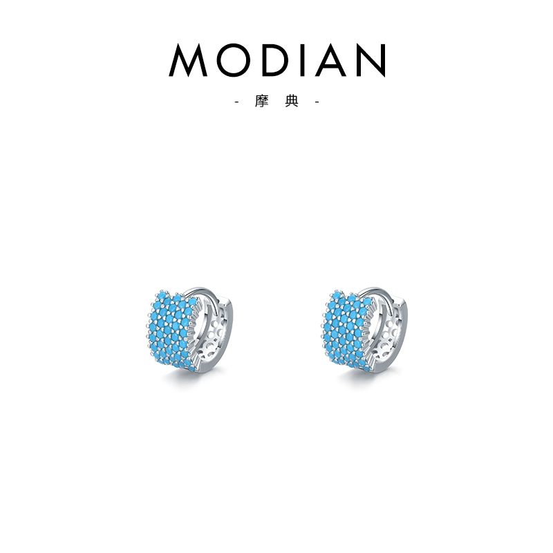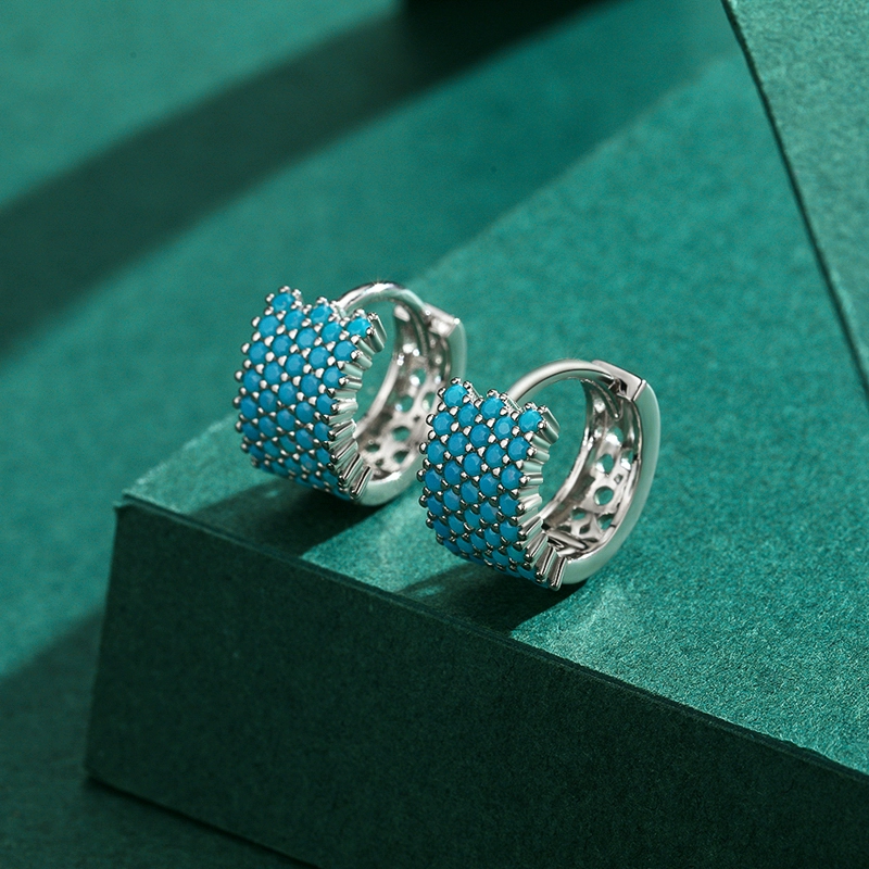 French retro turquoise blue earrings European and American ins style rivet ear bone ring ear buckle 925 sterling silver design sense