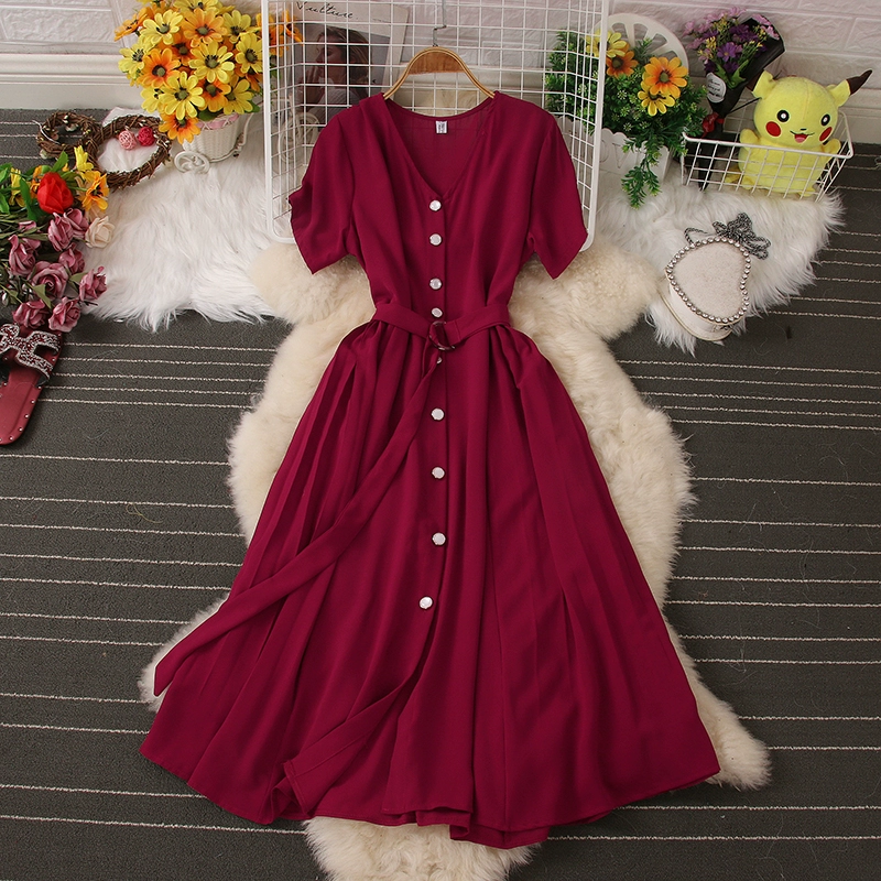| nameOriginal | French retro V-neck short-sleeved ladylike dress |