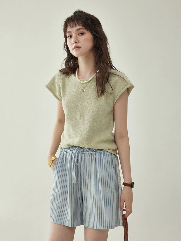 | nameOriginal | French round neck solid color rolled hem short-sleeved t-shirt sweater |