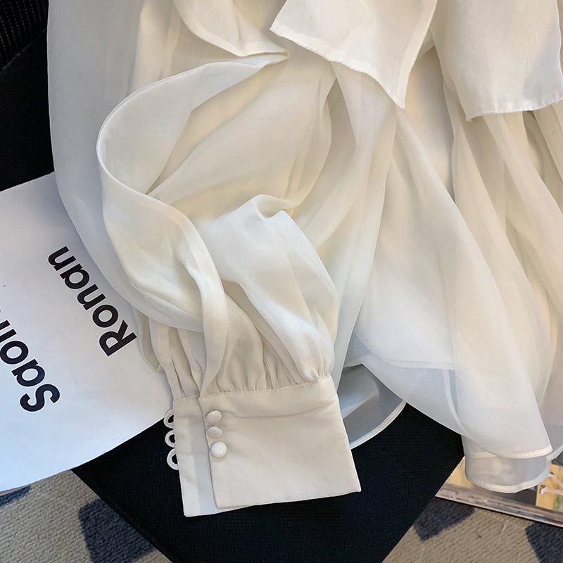 | nameOriginal | French Ruffled Lace-up Bow Shirt Women's Spring New Loose All-match Chanel Style Long-sleeved Chiffon Top |