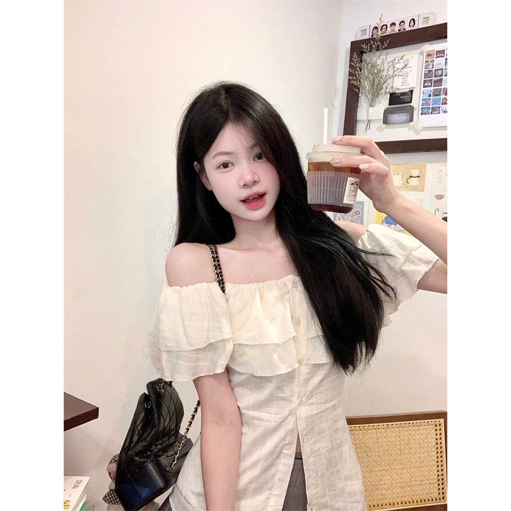 | nameOriginal | French ruffled one-shoulder single-breasted short-sleeved shirt |