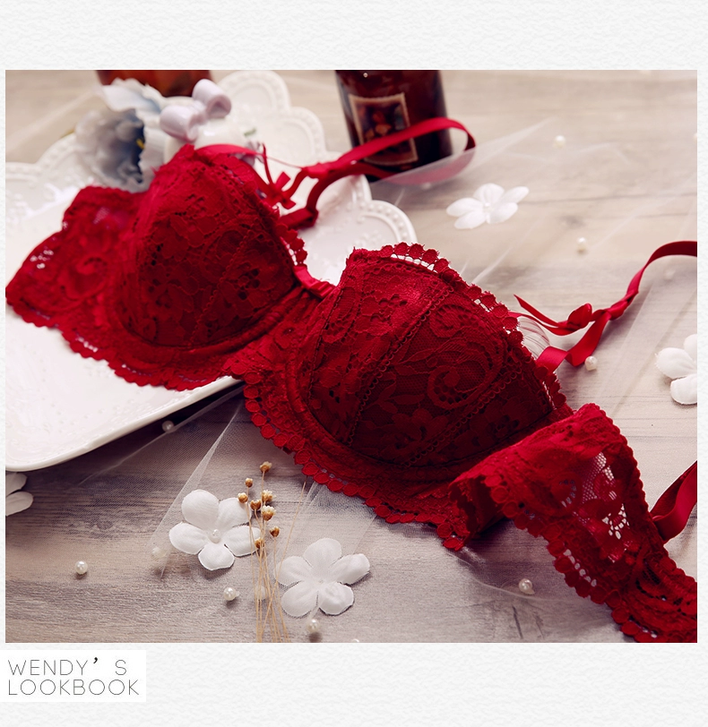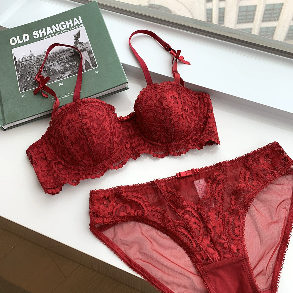 | nameOriginal | French sexy lace half cup thin bra set for girls 1/2 romantic red bridal bra push up underwear |