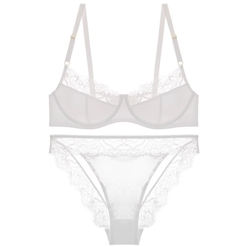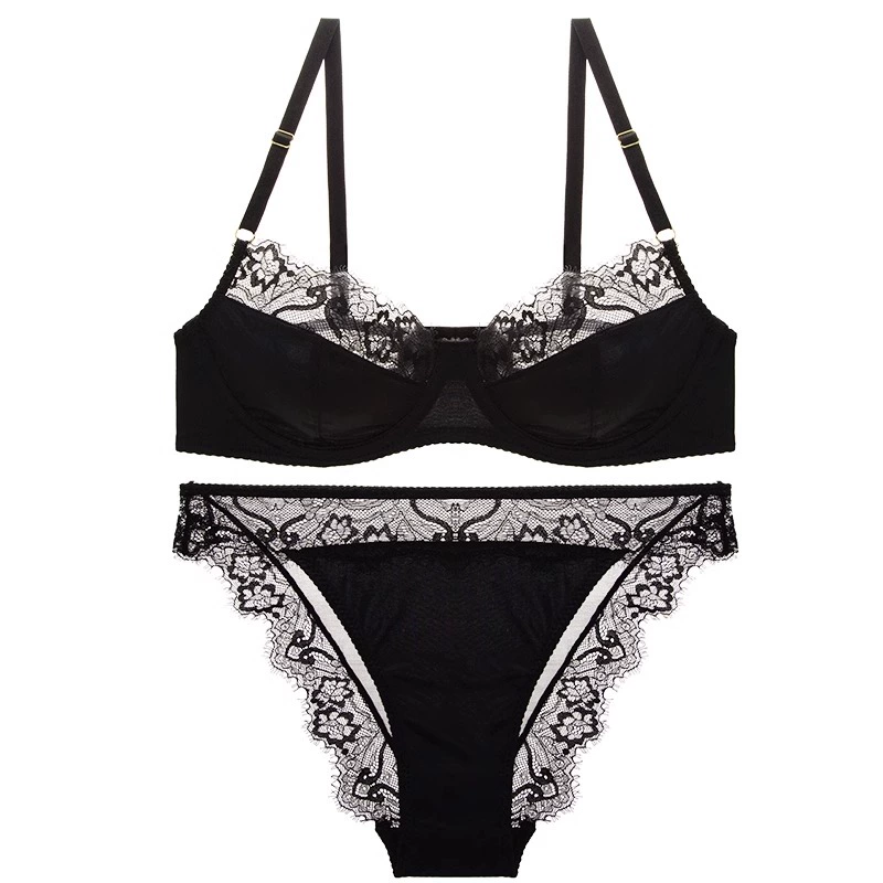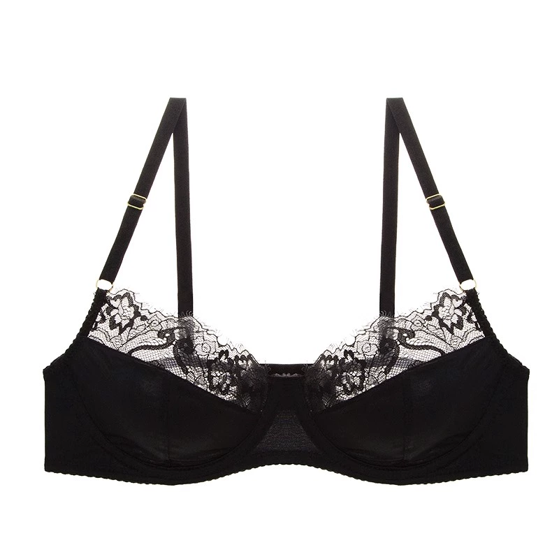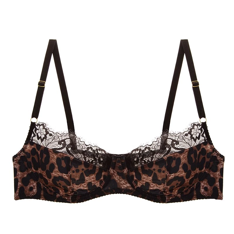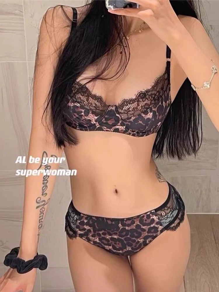 French sexy leopard print lace half-cup ultra-thin anti-sagging push-up bra set with big breasts and small bra