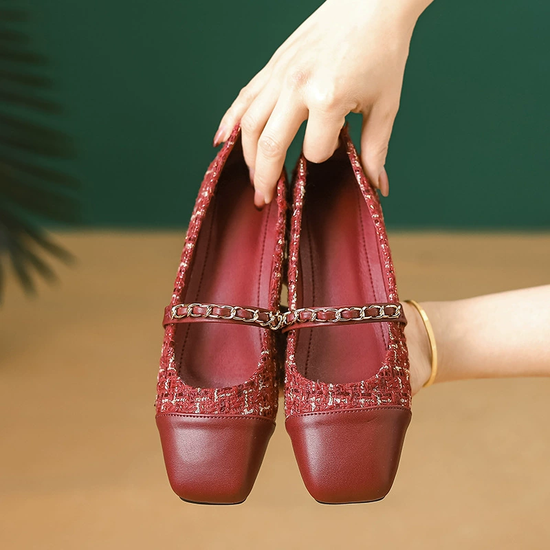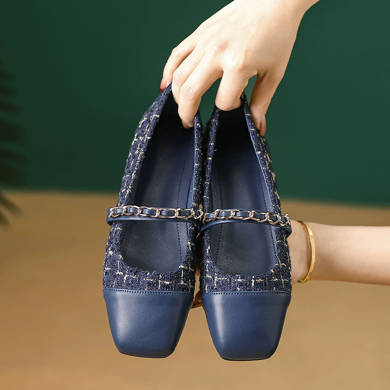 French shoes for women, niche design, 2024 spring new style, small fragrant scoop shoes, color matching, retro fashionable ballet shoes