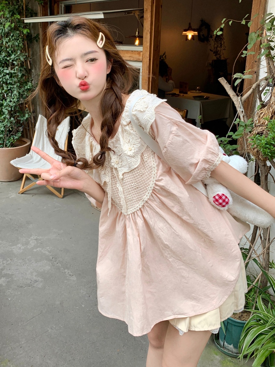 | nameOriginal | French shoulder women's summer short-sleeved shirt for fat mm |