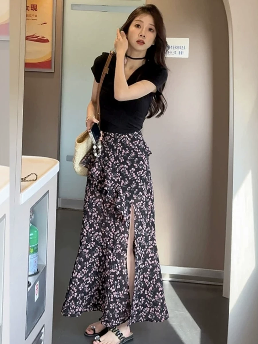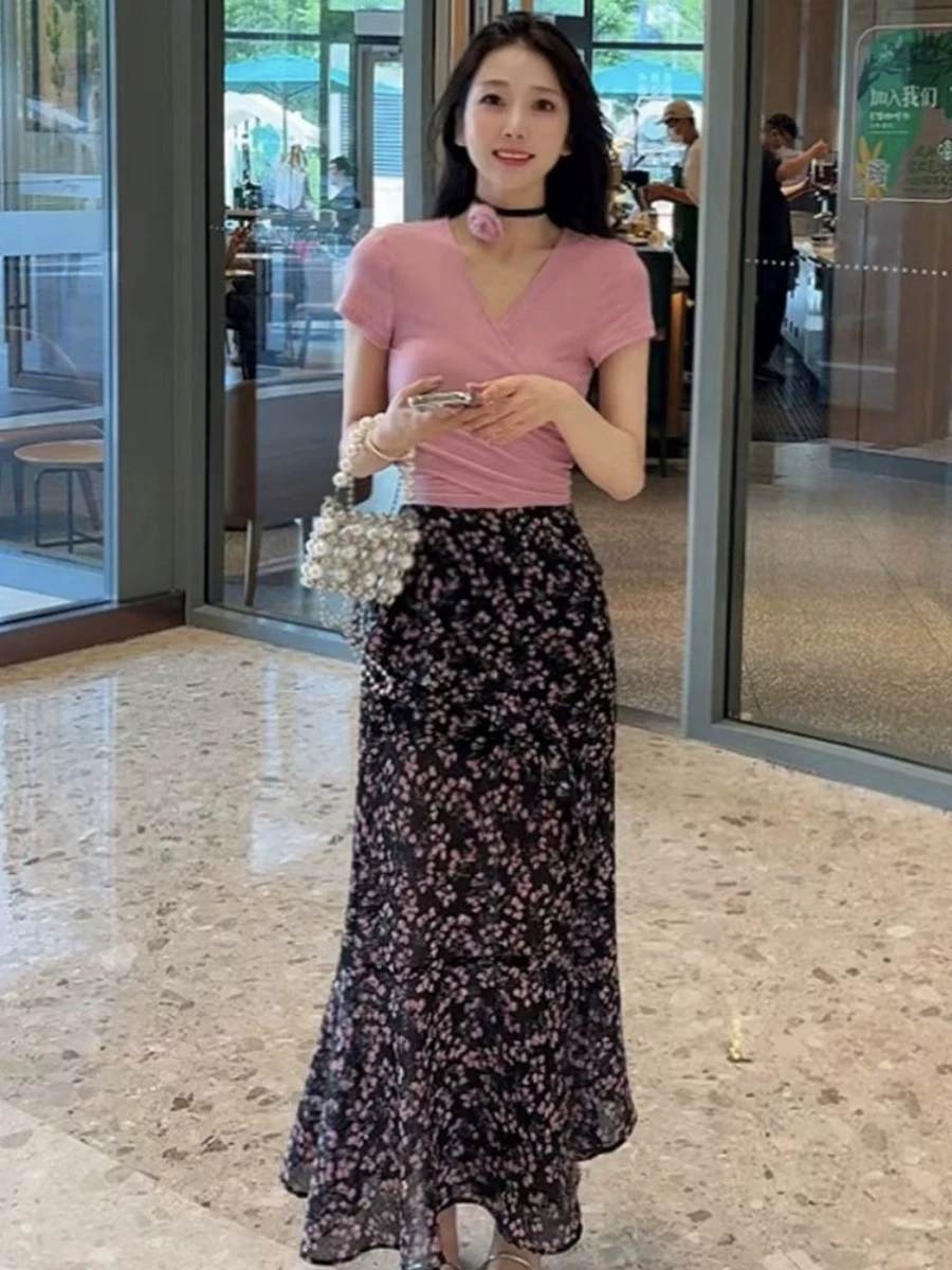 | nameOriginal | French Slim Fit T-shirt Floral Suit Skirt |