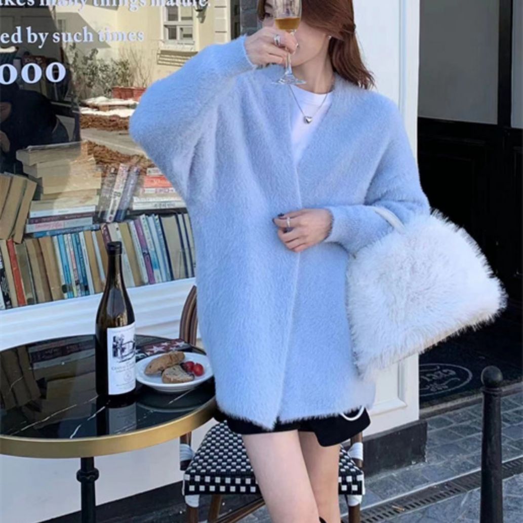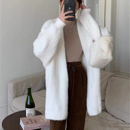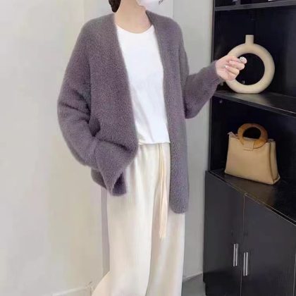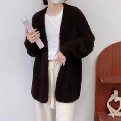 | nameOriginal | French Solid Color Gentle Autumn and Winter Sweater Women's Mid-Length Imitation Mink Velvet Milk Hoo Knitted Cardigan Loose Design Sense |
