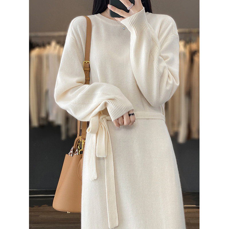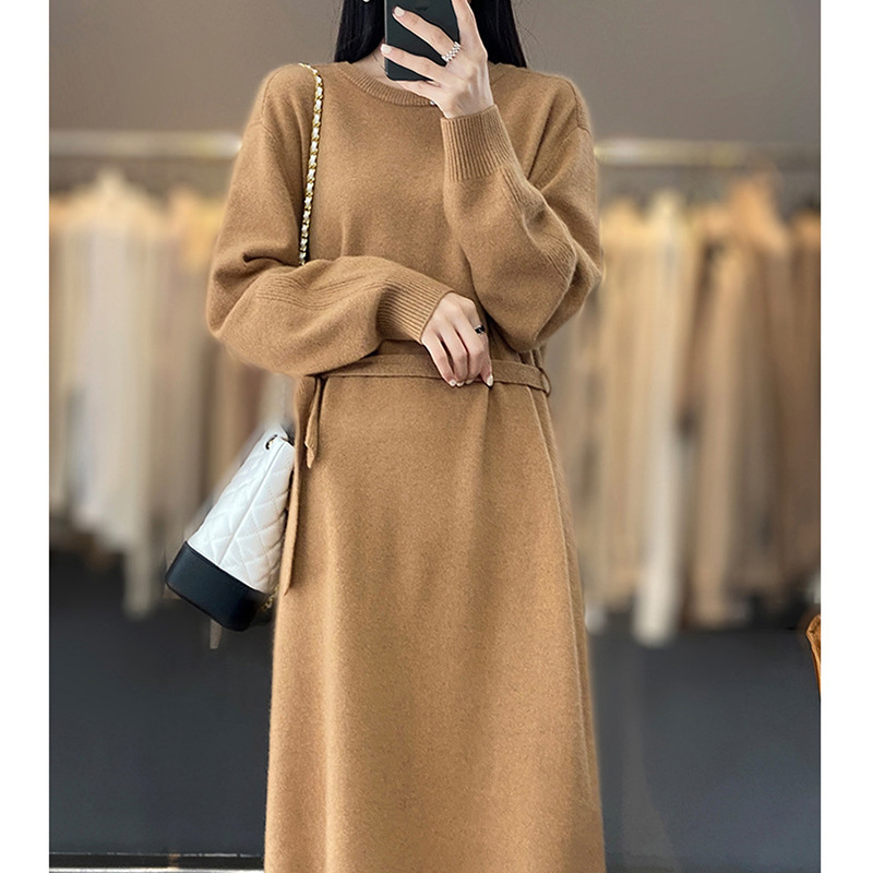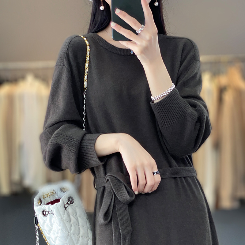 | nameOriginal | French Solid Color Lace-up Crewneck Sweater Dress Autumn and Winter Cross-border Foreign Trade Amazon plus size Base Knitted dress Women |