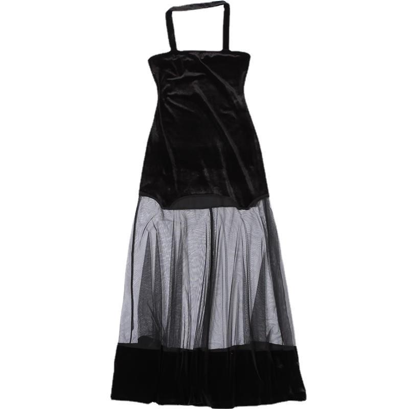 | nameOriginal | French Spice Girl Strapless Dress with Collar for Summer Pure Sexy Black Slim-fit Slim-fit Mesh Long Dress |