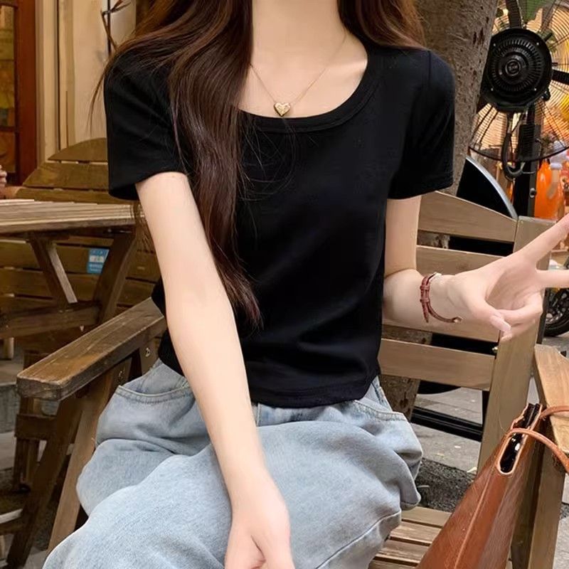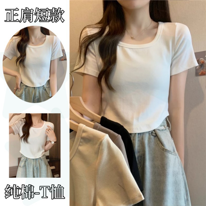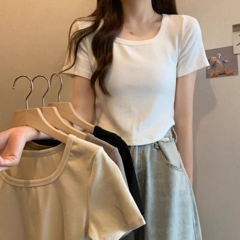 | nameOriginal | French Square Collar Shoulder Shirt Women's Short Summer Slim-fit Short-sleeve Niche Irregular Hem Chic Top |