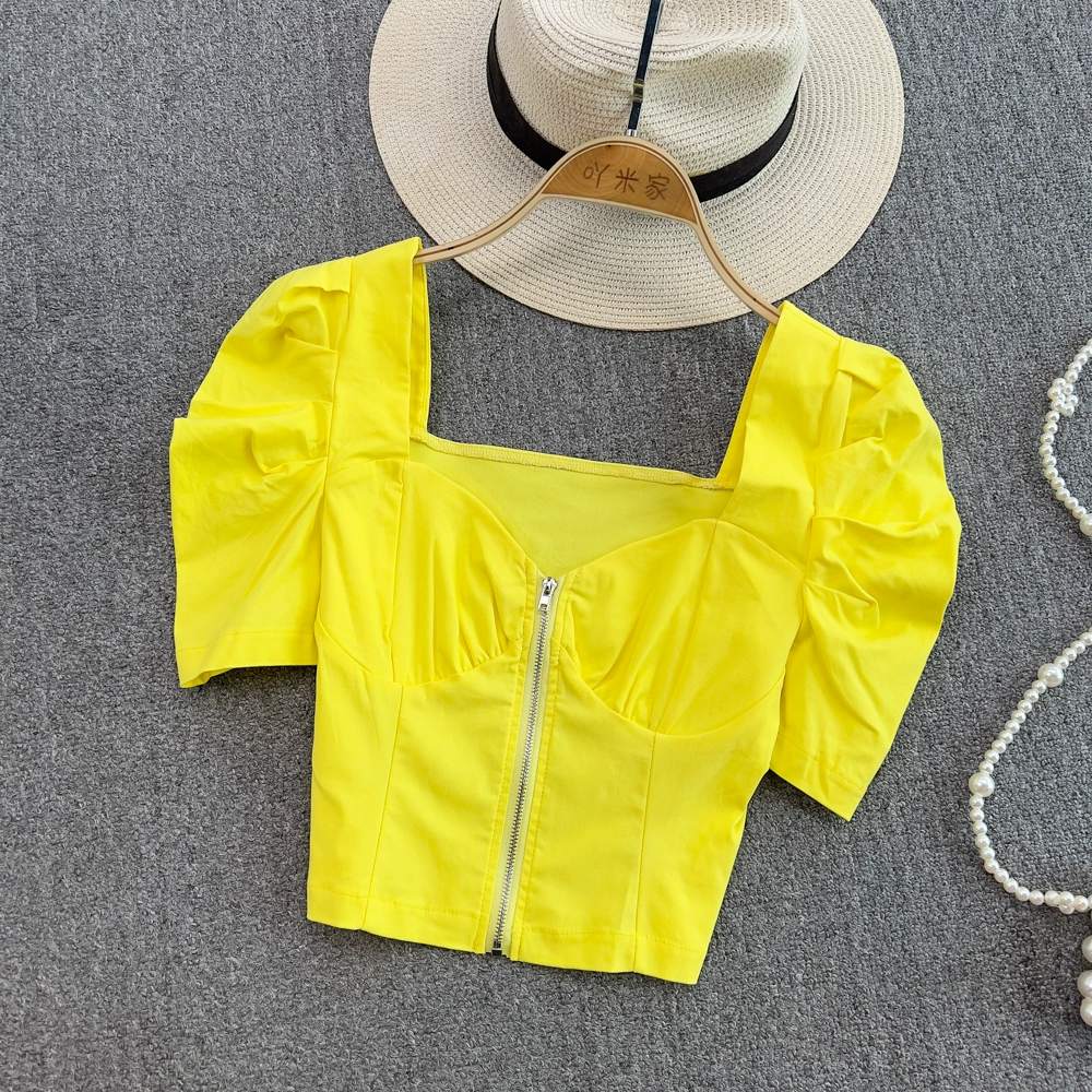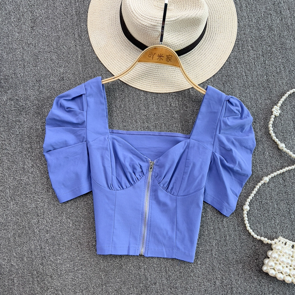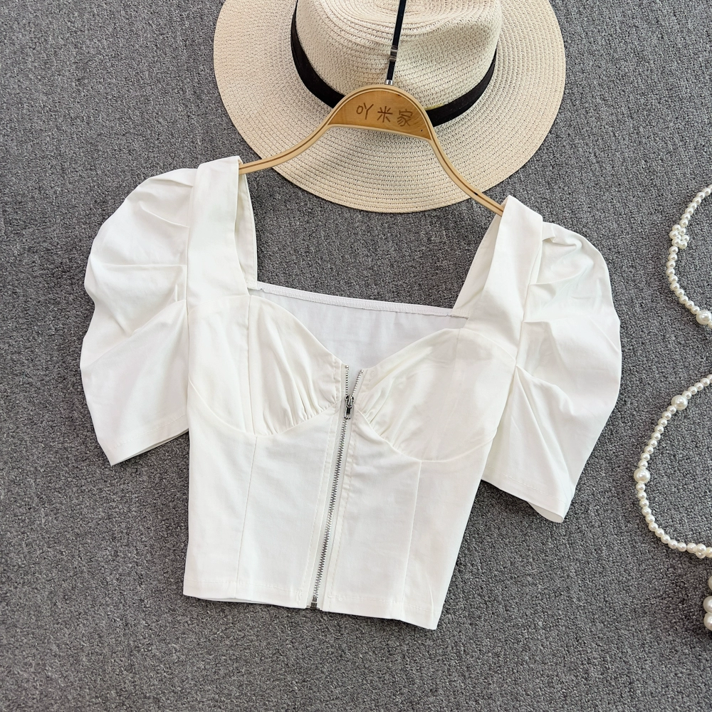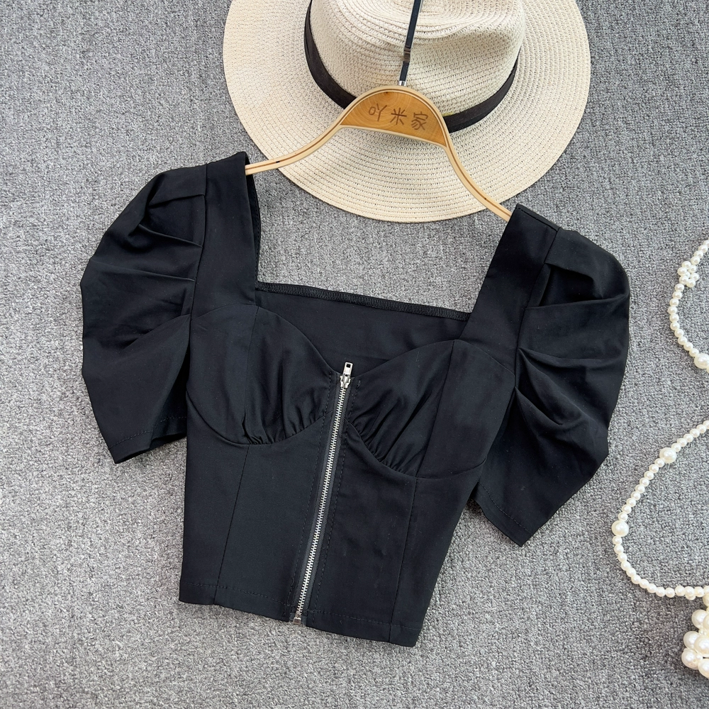 | nameOriginal | French square neck puff sleeve zipper shirt slim fit pullover |